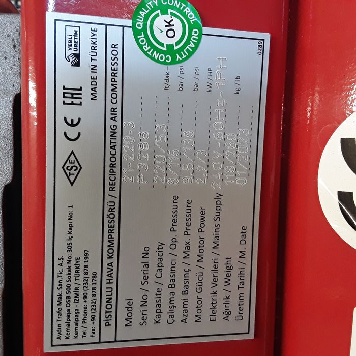 Aykom 3hp 220Ltr Tank 8 bar Single Phase Compressor 16cfm